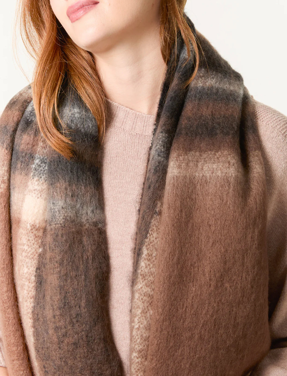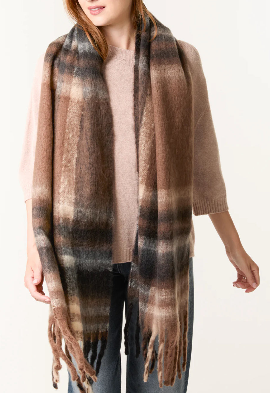 THE HANGAR check knitted chunky scarf chocolate