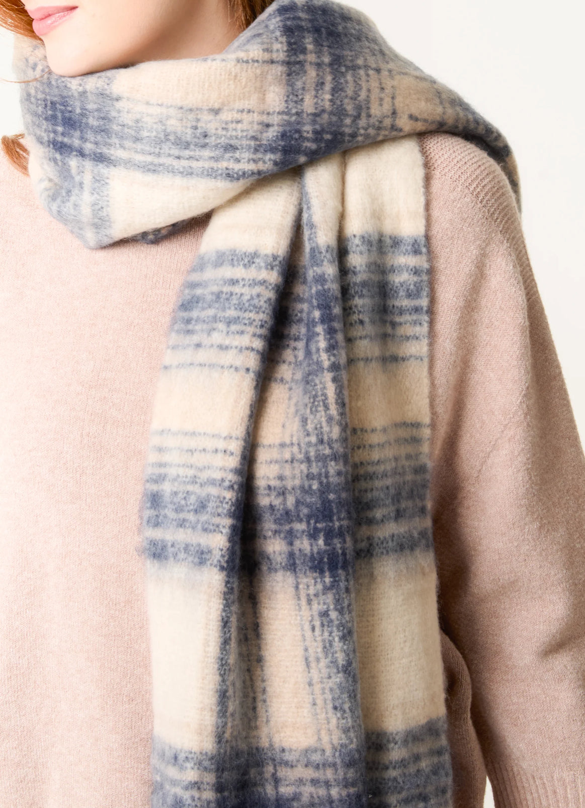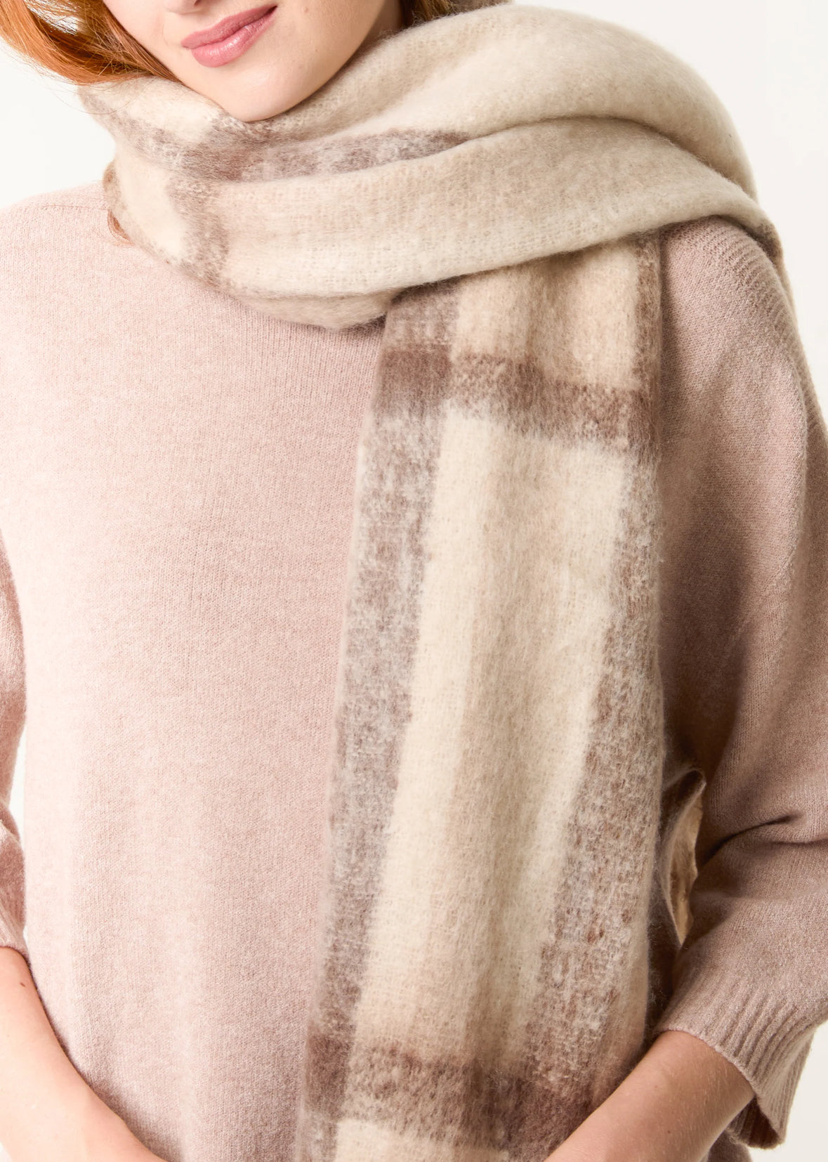 THE HANGAR check knitted chunky scarf oatmeal